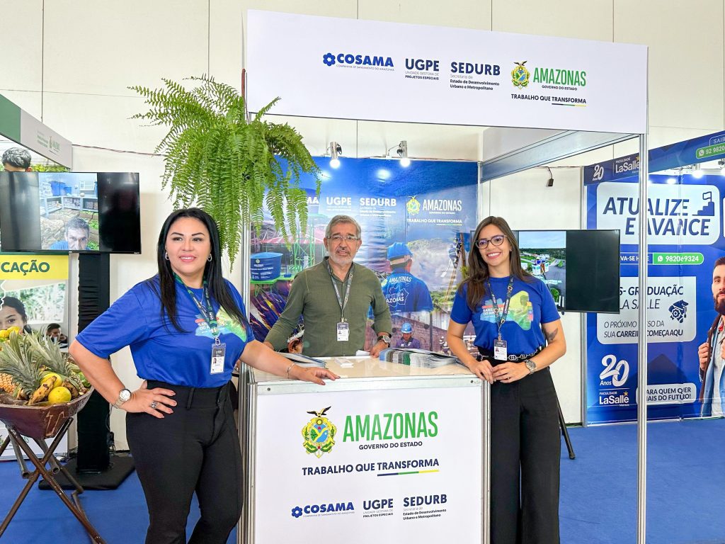 Um dos destaques no estande da Sedurb é o Projeto Água Boa, desenvolvido pela Cosama em colaboração com a Defesa Civil do Amazonas. Iniciado em 2020, o projeto já implantou 549 sistemas de abastecimento em 52 municípios, beneficiando mais de 160 mil pessoas.